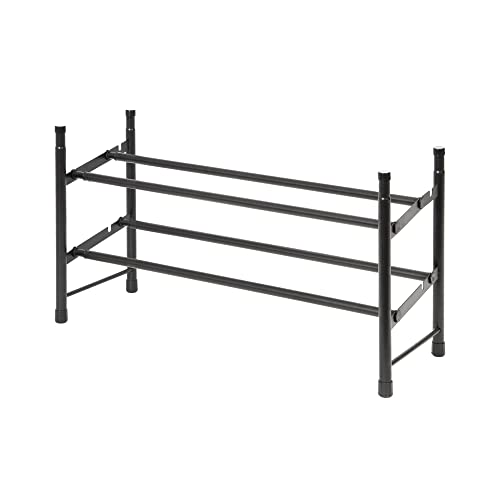 Relaxdays Étagère à Chaussures en métal, 2 Niveaux, empilable, Porte-Chaussures HLP 33,5x70x26 cm, pour 6 Paires, Noir
