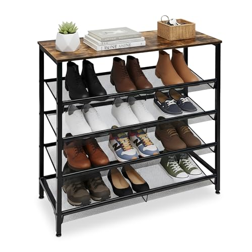 Étagère à Chaussures Relaxdays Industrial, 4 étagères en métal, H x L x P : 85 x 80 x 30 cm, Porte-Chaussures, Noir.