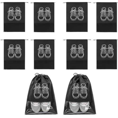Lot de 10 Sacs Porte-Chaussures de Voyage 32 x 43 cm | Sacs Anti-poussière Respirants avec fenêtre Transparente