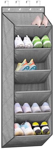 SLEEPING LAMB Étagère à chaussures pour porte, organiseur de chaussures pour enfants pour placard, rangement étroit à suspendre avec grandes poches profondes, gris
