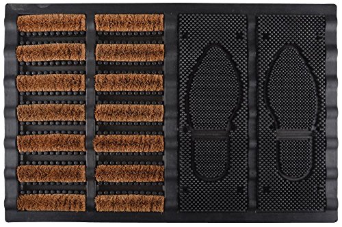 Esschert Design Tapis de Porte Brosse à Chaussures en Fibre de Coco Noir/Marron 60 x 40 x 3,6 cm
