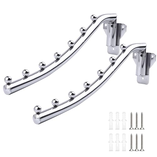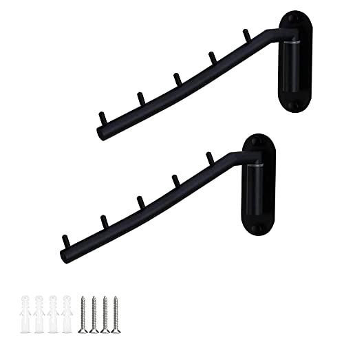 2 PCS Porte-manteau Pliant avec Support à Bras Pivotant, Porte Cintre Mural, Crochet de Suspension Pliable Mural en Acier Inoxydable avec 5 Crochets Muraux pour Balcon, Armoire, Cuisine, Blanchisserie