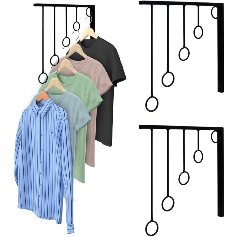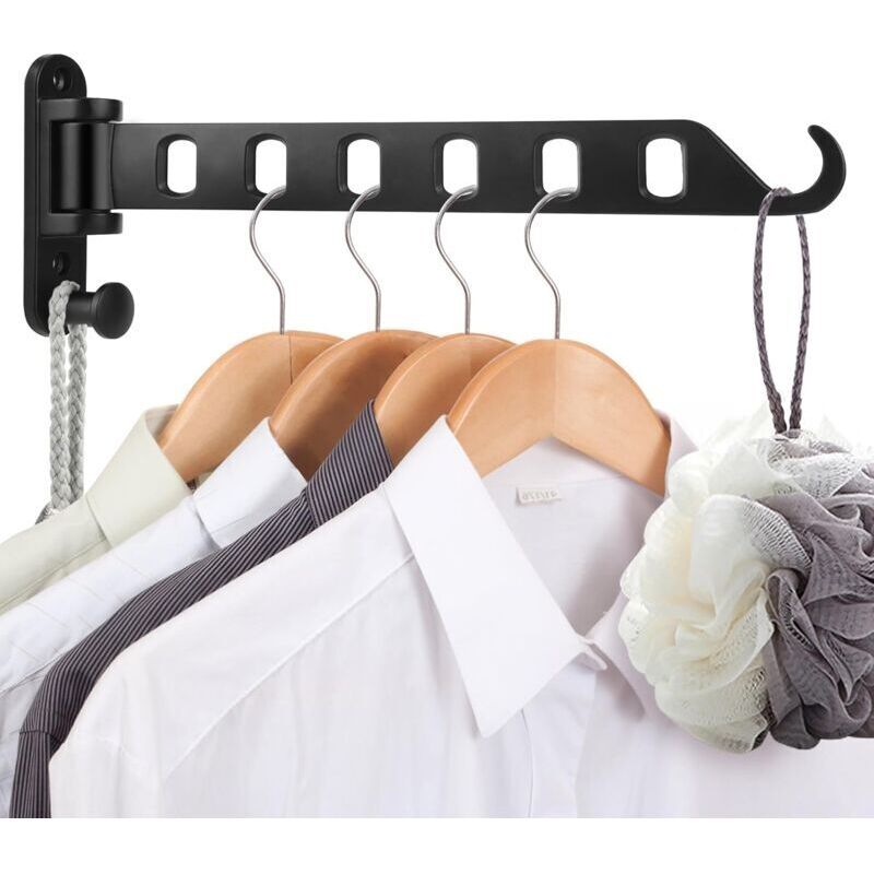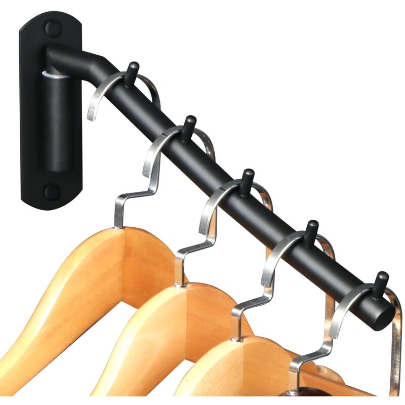 noir Cintre à Vêtements en Acier Inoxydable avec Bras Pivotant Barres de Support Porte Cintre Mural avec 5 crochets Pour vêtements Crochets Pour