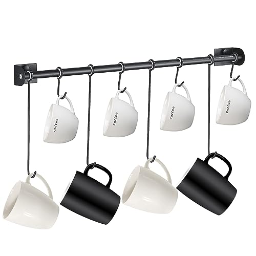 AJART Porte-tasses à café (43,2 cm/noir) - Support mural avec crochets flexibles pour tasses à café, tasses à thé, bocaux Mason - Ustensiles de cuisine, présentoir et cintre de rangement