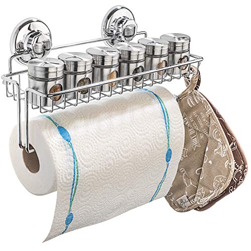 HASKO Accessories Porte-Serviettes à Ventouse avec étagère et Crochets – Support Mural en métal pour Salle de Bain et Cuisine – Cintre en Acier Inoxydable SUS 304 – Chrome