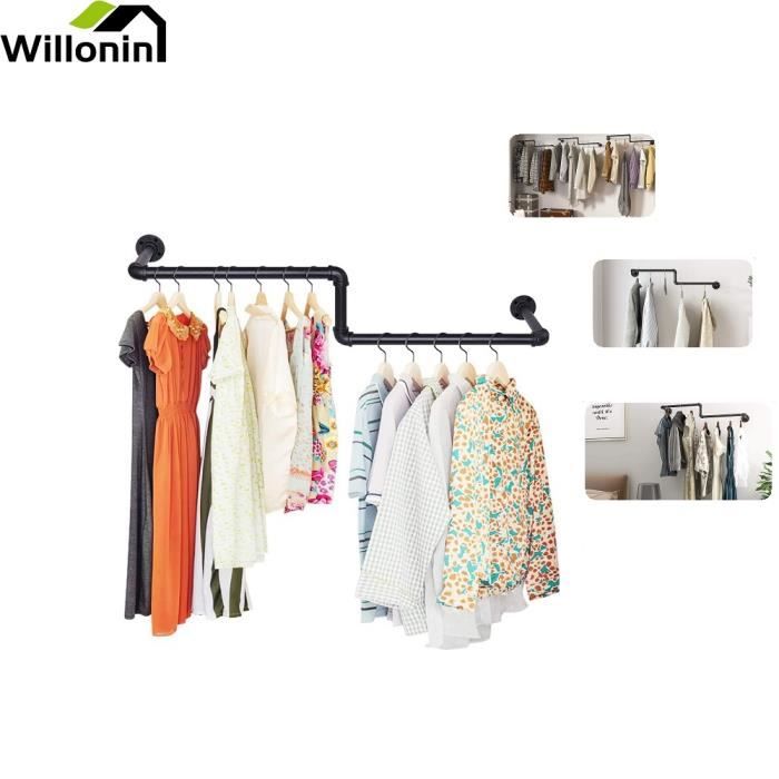 Porte-vêtements mural – Cintre en métal robuste avec étagère flottante robuste pour exposer les vêtements dans la chambre et la vente au détail