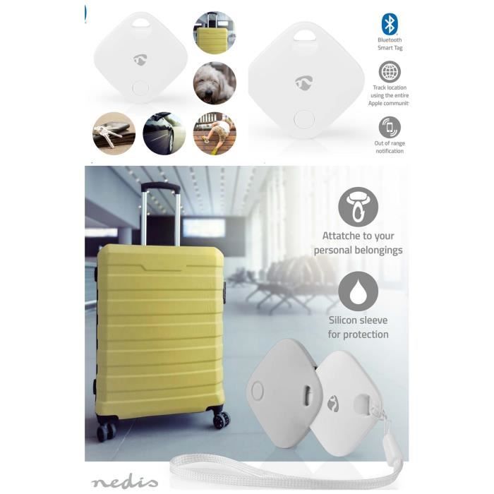 Nutale Smart Tag Key Finder - Localisateur d'étiquettes Bluetooth avec porte-clés pour trouver des clés, un appareil ou une clé de voiture - Blanc