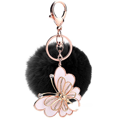 PTNKUIIY Porte-clés Pom Pom - Paillettes - Papillon - Strass - Boule en peluche - Porte-clés ornement pour clé de voiture - Pour femme et femme