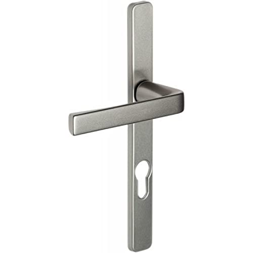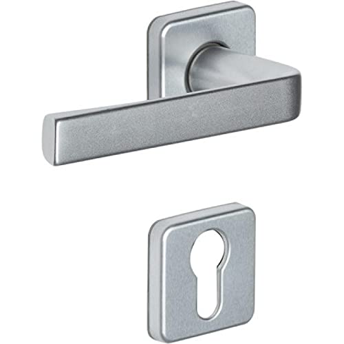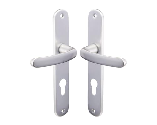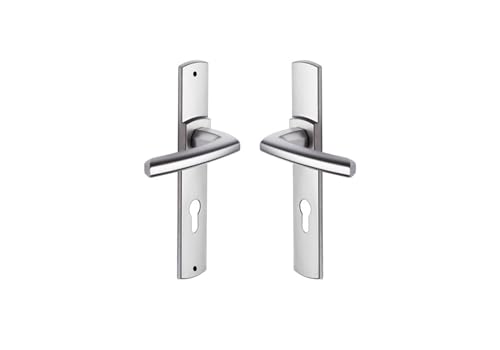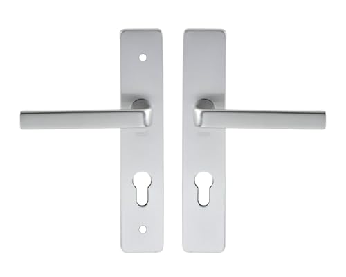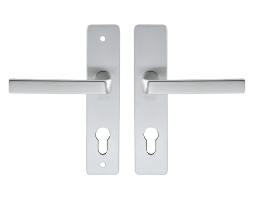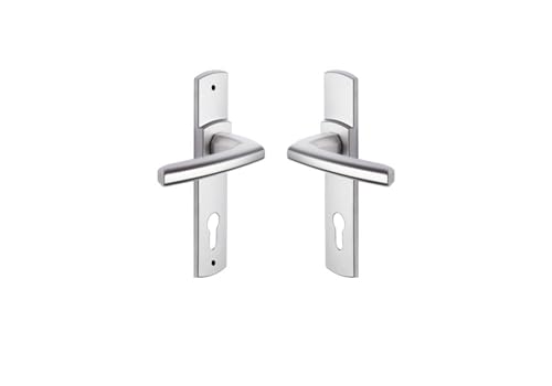 Vachette Set de Poignée de Porte sur Plaque KAZA - Clé I pour Porte d'Entrée/Cave/Abris de Jardin à Cylindre - Entraxe 195 mm - Matériau Aluminium Résistant - Garantie 10 Ans - Finition Argent
