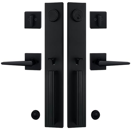 TMC MDHST2016DB-SK Poignée de porte double pour porte d'entrée à clé et poignée factice Noir mat