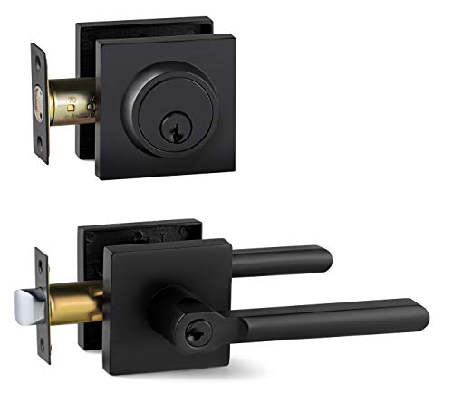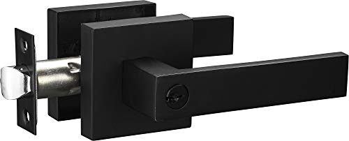 Berlin Modisch Poignée de porte d'entrée carrée contemporaine avec serrure et levier de verrouillage à clé [pour porte d'entrée ou bureau] réversible pour portes latérales droite et gauche très