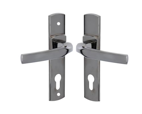 Berlin Modisch Ensemble de leviers de porte d'entrée avec serrure et clé - Série Designer - Pour porte d'entrée ou de bureau - Réversible pour portes droites et gauches - Finition noire en fer
