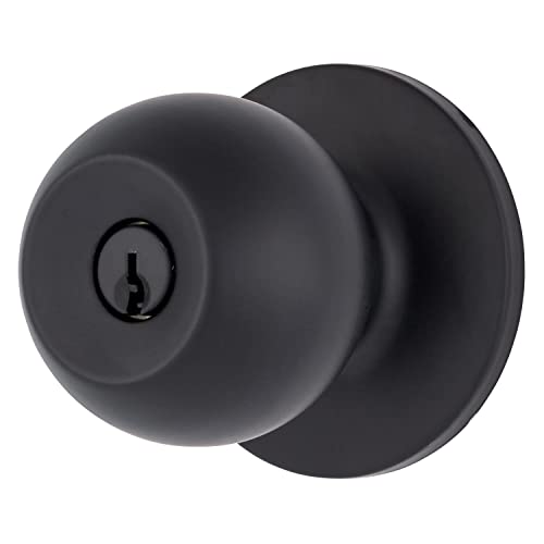 JO.KO Bouton de porte avec serrure et clé, noir mat, rond, serrure à bille, bouton de porte intérieur/extérieur pour chambre à coucher, salle de bain, entrée