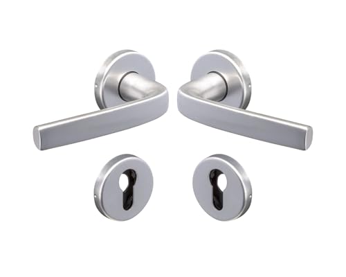 Vachette Set de Poignée de Porte sur Rosaces Clé I KAZA - pour Porte d'Entrée, Cave, Bureau et Abris de Jardin à Cylindre - Matériau Aluminium Résistant - Garantie 10 Ans - Finition Anodinox
