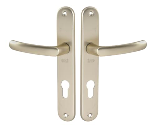 Vachette Set de Poignée de Porte sur Grande Plaque - Version Clé I, Porte d'Entrée, Bureau, Garage - Entraxe 195 mm - Système de Pose Facile - Aluminium Résistant - Finition Champagne - Garantie 2 Ans
