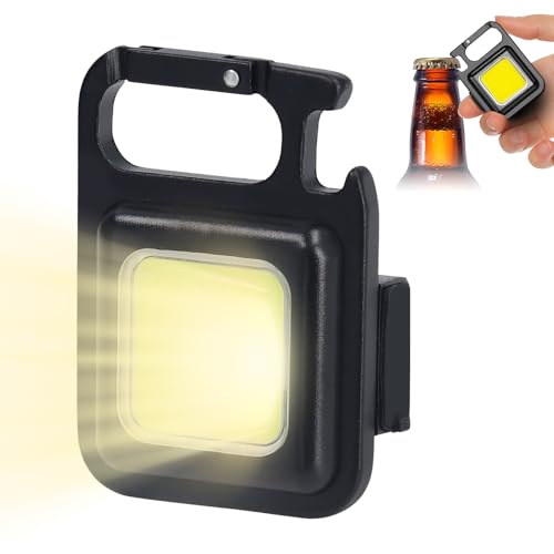 Pwshymi Mini Lampe de Travail Portable Rechargeable, 500 Lumen COB Lampe Porte Clé avec Ouvre-Bouteille pour Camping, Urgence