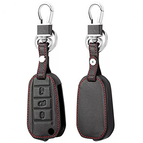 QYPLKJHG Coque de Clé de Voiture pour Peugeot 5008 2016-2020, Housse de Protection Coque Clé avec Porte-Clés Coque Boîtier Clef de Telecommande Cuir Étui de Clé Carte Auto Accessoires,A-4