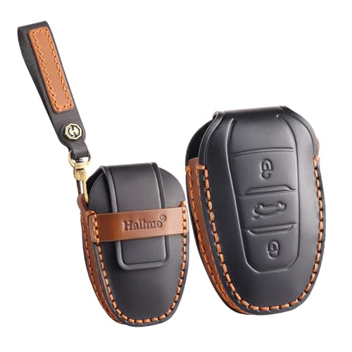 HIBEYO Smartkey Étui de Protection pour clé de Voiture en Cuir pour Peugeot 301 308 508 3008 5008 Coque de Protection pour Citroën C4L C3 DS3 pour Opel Grandland X télécommandes Porte-clés A Noir