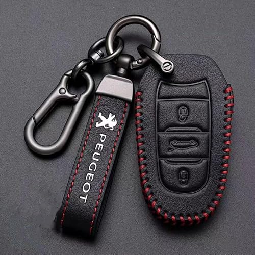 ALIANQ Cuir Voiture clé à Distance étui Coque Peau Ensemble Porte-clés 3 Boutons pour Peugeot 3008 308 RCZ 508 408 2008 407 307 4008
