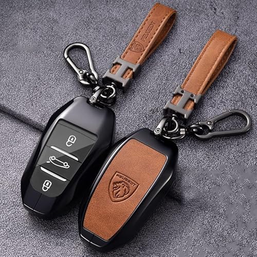 VOLBOZ Coque de Clé de Voiture pour Peugeot 308 207 301 408 508 3008 2008, Étui de Protection pour Clé de Voiture, Housse pour Clé De Voiture, Porte-ClÉS de Voiture Portable Accessoires,B Brown2
