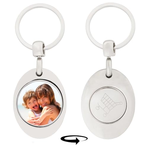Porte-clés personnalisé avec Photo avec jeton Caddie intégré – Porte-Clef métal argenté Pratique avec Impression Photo - Accessoire Pratique Original