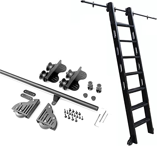 Kit de quincaillerie pour porte de grange coulissante de 1 m à 6 m, rail d'échelle mobile rond en acier noir, kit de rail télescopique coulissant pour bibliothèque (échelle non incluse), sys
