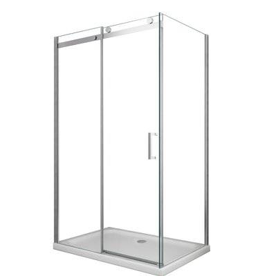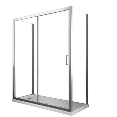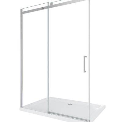 Porte de douche coulissante avec paroi latérale ouverture gauche l.160+90xH.200 cm verre anticalcaire, profilé chromé, Schulte MasterClass