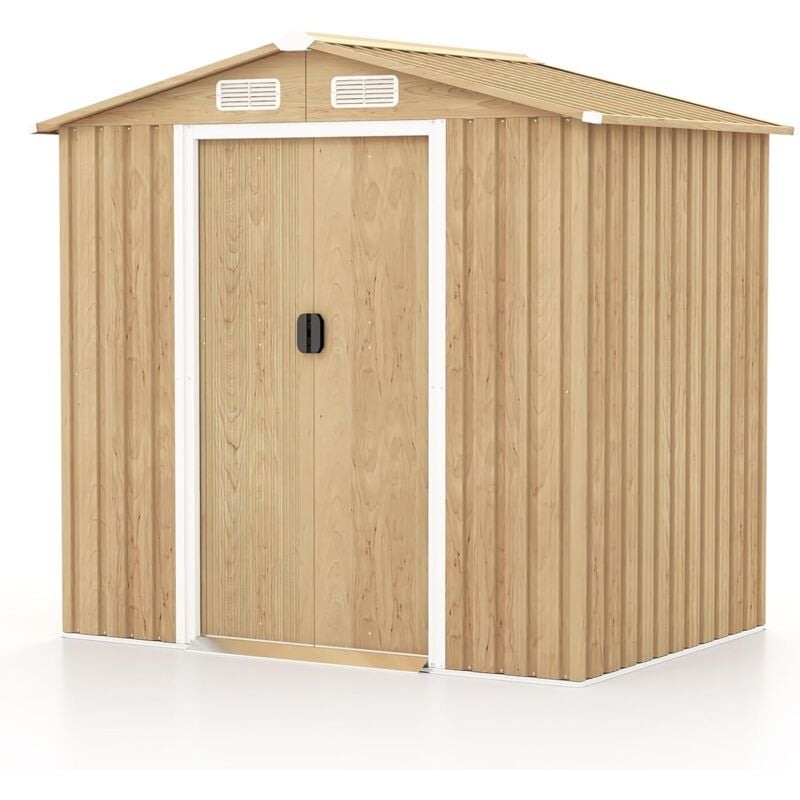COSTWAY Abri de Jardin Métal Extérieur 2.7㎡ Acier Galvanisé avec Fondation, Toit Penché, 4 Persiennes, Double Porte Coulissante, Cabane Jardin Exterieur avec Rampe, pour Vélo, Poubelle, 213x127x185CM