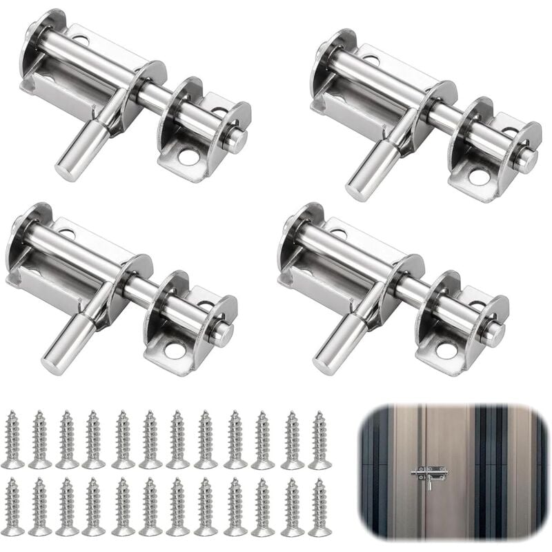 VINATO Verrou Porte Exterieur en Acier Inoxydable 304, Lot de 4 Loquet Porte Exterieur avec Vis, Serrure Porte Coulissante pour Portail, Fenêtre et Clôture, Argent