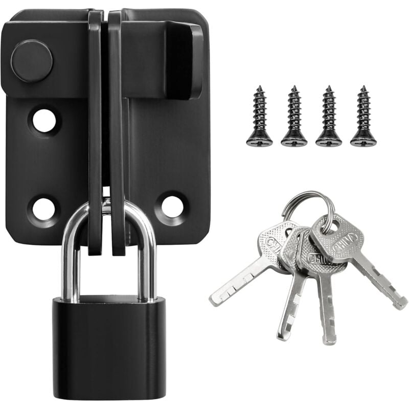 Jamais UTILISÉ]Verrou Porte Exterieur/Interieure Coulissante avec Cadenas, Loquet Porte à Bascule Boulon pour Portail Jardin Armoire, Finition Noire