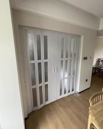 Portes coulissantes pliantes - Séparateur de pièce interne - Système de double rail métallique - En plastique blanc - Porte coulissante de cuisine - 246 cm x 203 cm