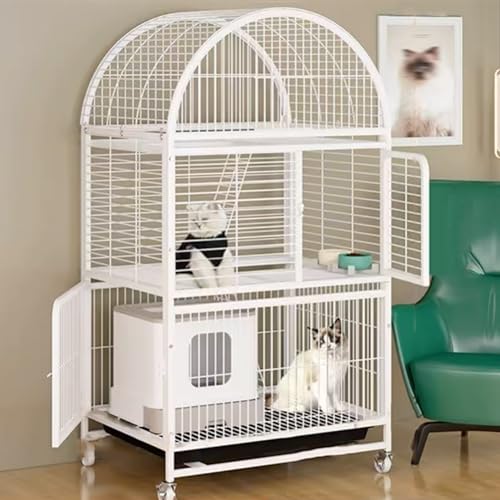 Enclos pour chat avec cage métallique à 3 niveaux, design dôme avec porte coulissante verrouillable, idéal pour les petits animaux de compagnie, cadre robuste pour une utilisation en intérieur