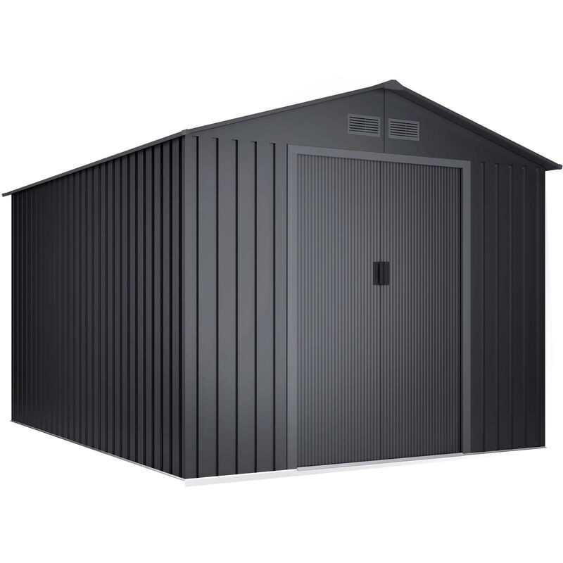 Wasabi - Abri de jardin métallique 8,08m2 Light Anthracite - 4 grilles - Double porte coulissante - Gris - Rangement extérieur - 258x313x202cm
