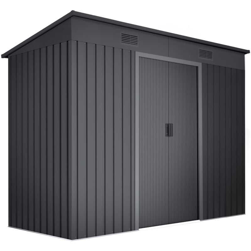Abri de rangement métallique 6,3 m³, toit à une pente, porte coulissante, anthracite, résistant aux intempéries