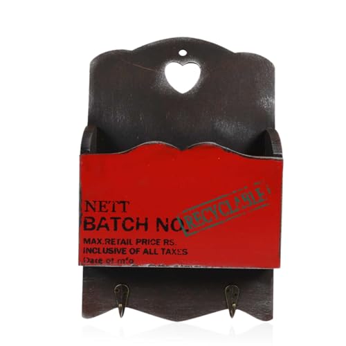Cyrank Porte-courrier Rustique, Porte-clés pour Porte d'entrée Murale Organisateur de courrier Mural Courrier en Bois et Porte-clés Étagère d'entrée avec 2 Crochets pour la Maison(Rouge)