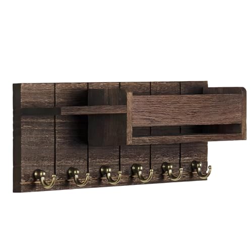 CAKEEYUM Porte-clés et courrier pour mur de clés en bois avec 6 crochets organisateur mural moderne pour stocker des magazines de lettres et des parapluies