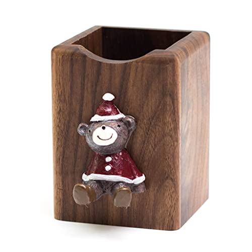 Muteitt Porte-stylos en Bois De Noyer, Porte-Crayon Multifonction, Support pour Téléphone, Stylo Portable, Bureau Debout, Organisateur De Rangement pour L'école Le Bureau
