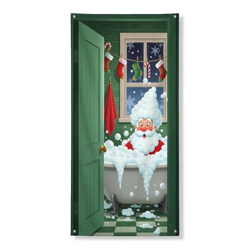 Bannière décorative pour porte de baignoire Père Noël - Thème de Noël - Pour intérieur et extérieur - 91,4 x 183 cm