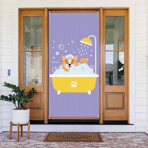 Corgi Couvertures de porte de baignoire décoratives pour intérieur et extérieur, printemps, été, automne, hiver, Halloween, Noël