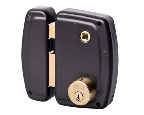 Vachette Serrure en applique horizontale à fouillot Droite, Série PS, pour Porte d'Entrée - 674BQ60/SC D - Sûreté à cylindre 5 goupilles, Axe à 60 mm, Utilisation avec poignée carré 6mm, 3 Clés, Gris