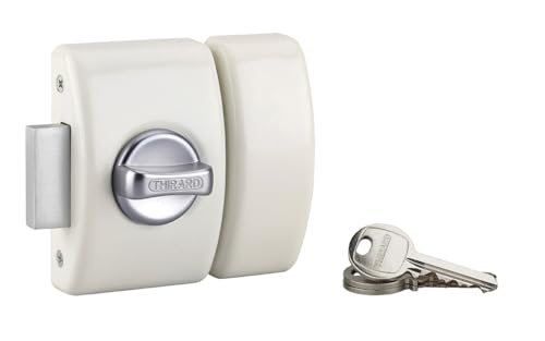 THIRARD - Verrou à Bouton Design 5 pour Porte d'Entrée - Cylindre Laiton 45 mm - Ø 23 mm - Acier Époxy Blanc - 3 Clés Plates Crantées - Hauteur 94 mm - Largeur 60 mm