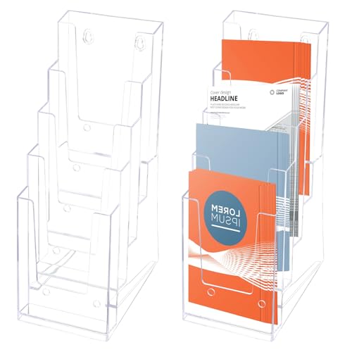 Yallmie 2 Pièces Porte-Brochures,15,7x10,8x28,8cm Porte Flyer en Acrylique Transparent, 5 Étages Support Flyer Mural et Table Présentoir à Brochure, Présentoir de Table pour Menu, Document, Dépliant