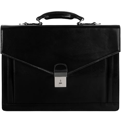 Time Resistance Porte Document Homme en Cuir - Sac Bandoulière en Cuir Pleine Fleur - Fabriqué à la Main en Italie pour Ordinateur Portable Cartable Homme (Noir)