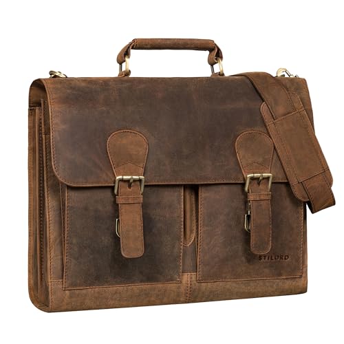 STILORD 'Jeffrey' Porte Document Femme et Homme Cuir Sac d'Enseignant XL Sac à Bandoulière Ordinateur Portable 15,6 Classeur A4 Trolley, Couleur:Missouri - Marron
