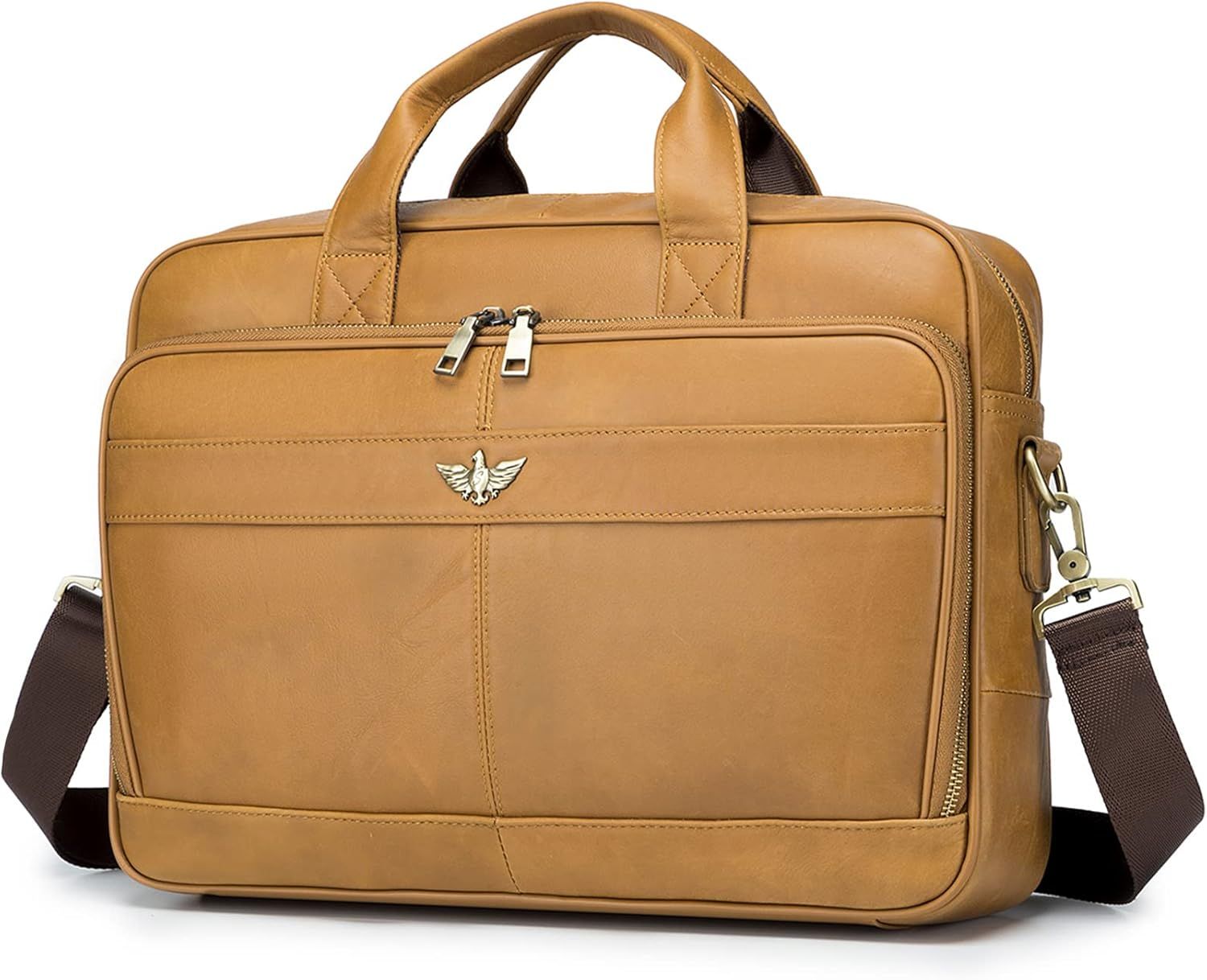 BAGZY Sacoche Homme pour Ordinateur 15.6 Pouces Sac Homme Cartable Cadeau Homme Porte Document Cuir Véritable Rétro Sacoche Mallette de Voyage Travail