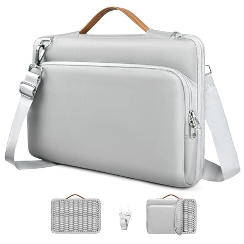 GizellMG Sac PC 14,4 Pouces Pochette de Tablette Sac à Main Porte-Document Ordinateur Portable Valisette Portable Sac d’Affaire avec Position Smartphone pour Voyage Réunion Gris