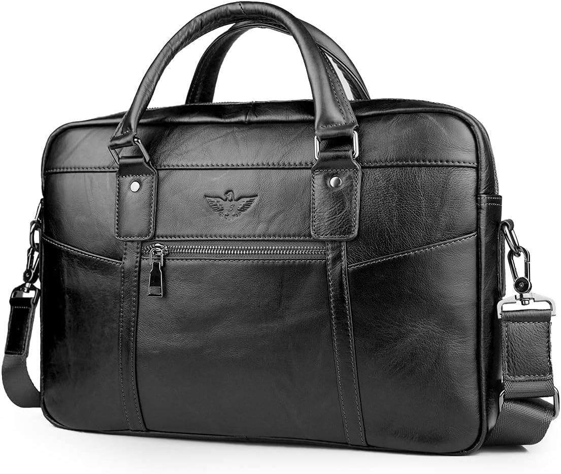 BAGZY Mallette en Cuir Sac Homme Cuir Cartable Homme Porte Document Véritable Sac Ordinateur Business 14 Pouces Sac à Main Cartable Sacoche Ordinateur d'affaires Sac à Bandoulière Serviette