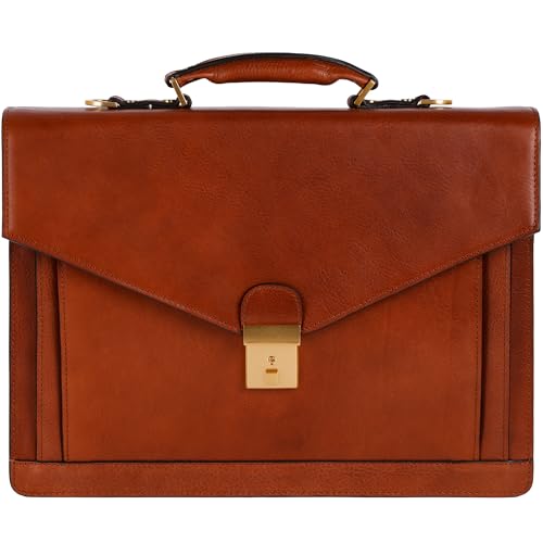 Time Resistance Porte Document Homme en Cuir - Sac Bandoulière en Cuir Pleine Fleur - Fabriqué à la Main en Italie pour Ordinateur Portable Cartable Homme (Marron Cognac)
