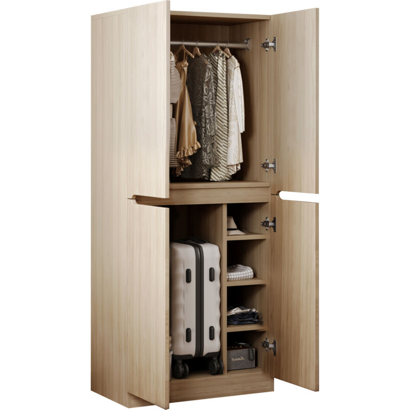Armoire 70x40x170 Cm En Bois Naturel, Double Porte, Grand Volume De Rangement Au Style Sobre