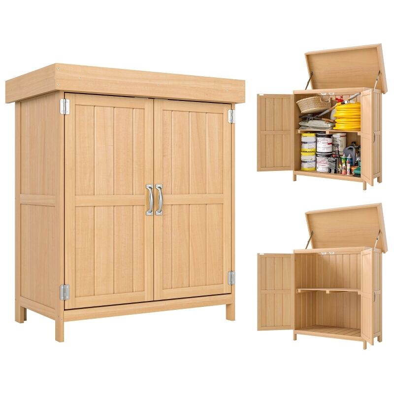 Armoire de Jardin sur Pied Double Porte étagère et Toit bitumé relevable dim. 74L x 43l x 88H cm Bois Massif de Sapin
